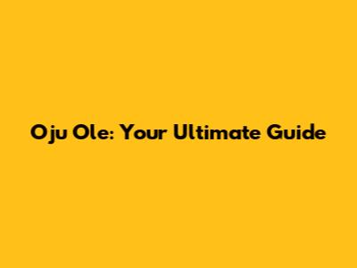 Oju Ole: Your Ultimate Guide