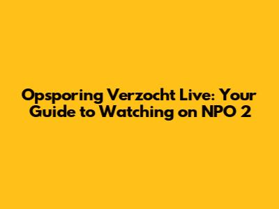 How to Watch Opsporing Verzocht Live on NPO 2