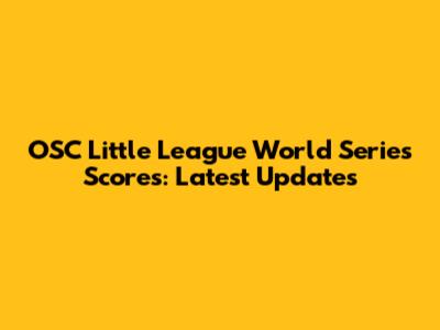 OSC Little League World Series Scores: Latest Updates
