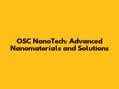 OSC NanoTech: Advanced Nanomaterials And Solutions