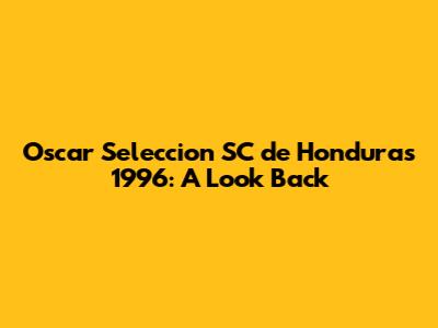 Oscar Seleccion SC Honduras: A Look Back At 1996