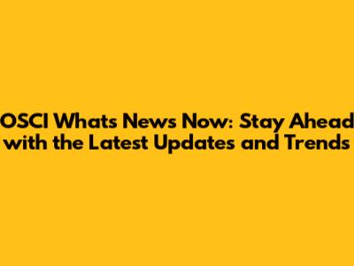 OSCI What's News Now: Latest Updates & Trends