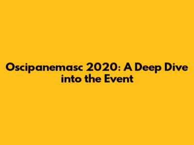 Oscipanemasc 2020: A Deep Dive Into The Event