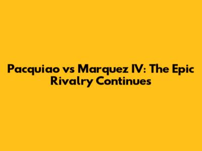 Pacquiao Vs Marquez IV: The Epic Rivalry Continues