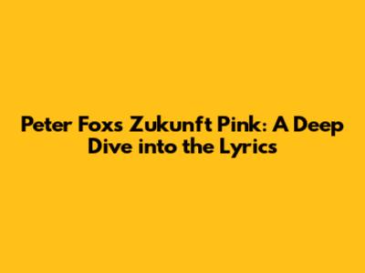 Hey guys! Today we're diving deep into a track that's been making waves, Peter Fox's 'Zukunft Pink'. If you're like me, you love a song that not only sounds amazing but also makes you think. And let me tell you, the lyrics of 'Zukunft Pink' are packed with so much meaning, it's almost overwhelming in the best way possible. We're going to break down what makes this song so special, exploring the themes, the imagery, and the overall message Peter Fox is sending out to the world. So grab your favorite drink, get comfy, and let's unpack this lyrical masterpiece together. It's going to be a wild ride through the future, pink and all!
