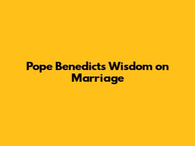 Pope Benedict's Wisdom On Marriage