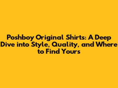 Poshboy Original Shirts: Style, Quality & Where To Buy