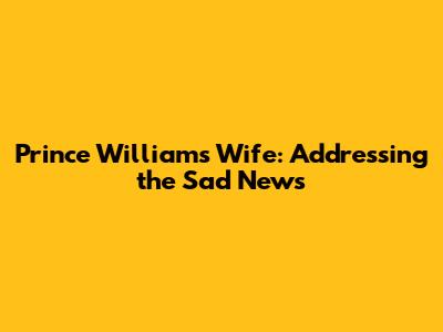 Prince William's Wife: Addressing The Sad News
