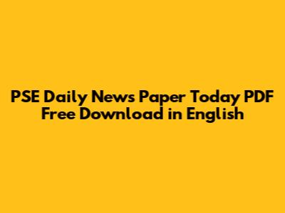 PSE Daily: Download Today's English News PDF For Free