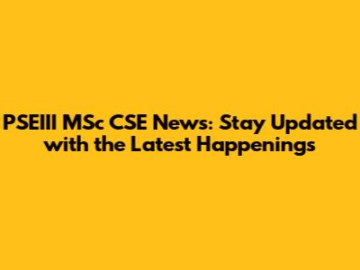 PSEIII MSc CSE News: Latest Updates And Insights