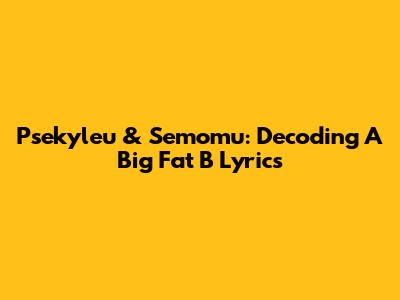 Psekyleu & Semomu: Decoding 'A Big Fat B' Lyrics