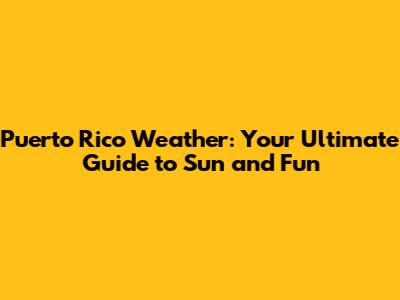 Puerto Rico Weather: Your Ultimate Guide