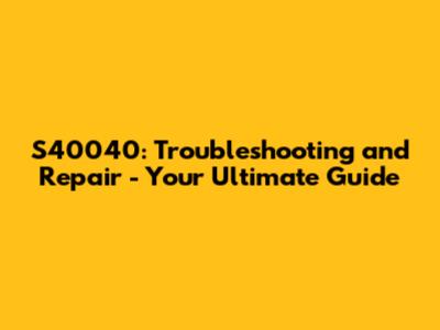 S40040: Troubleshooting And Repair - Your Ultimate Guide