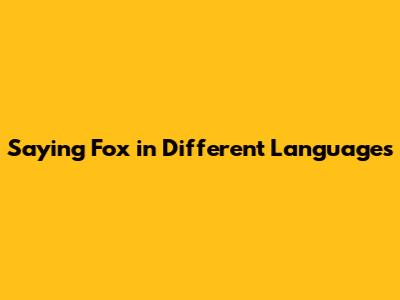 Saying 'Fox' In Different Languages