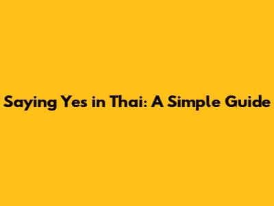 Saying Yes In Thai: A Simple Guide