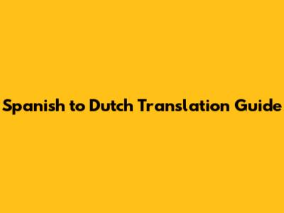 Spanish To Dutch Translation Guide