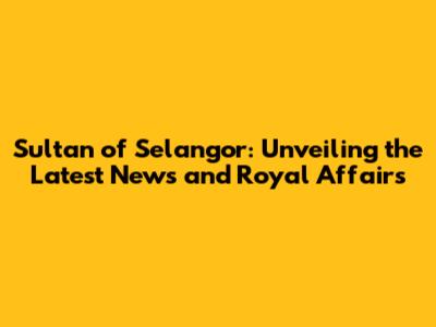 Sultan Of Selangor: Updates And Royal Insights