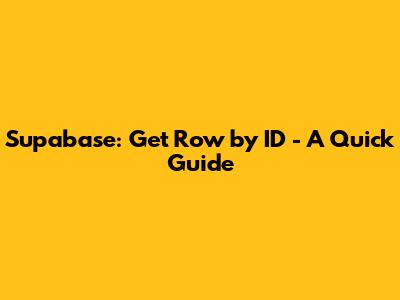 Supabase: Get Row By ID - A Quick Guide