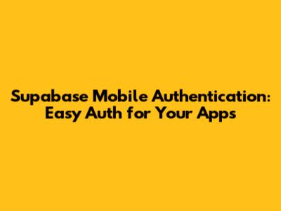 Supabase Mobile Authentication: Easy Auth For Your Apps
