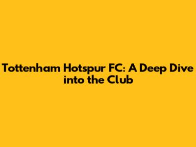 Tottenham Hotspur FC: A Deep Dive Into The Club