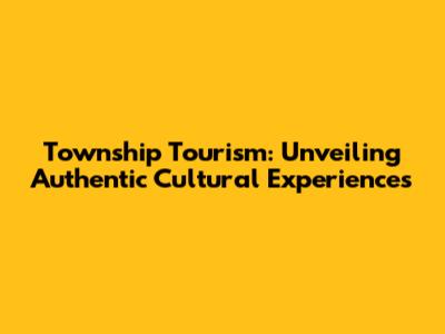 Township Tourism: Unveiling Authentic Cultural Experiences