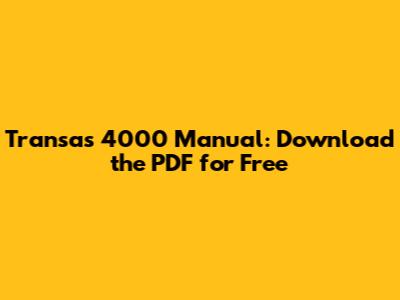 Transas 4000 Manual: Download The PDF For Free