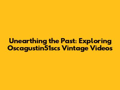 Unearthing The Past: Exploring Oscagustin51sc's Vintage Videos