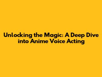Unlocking The Magic: A Deep Dive Into Anime Voice Acting