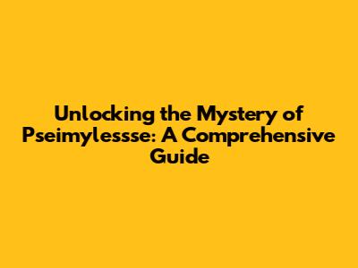 Unlocking The Mystery Of Pseimylessse: A Comprehensive Guide