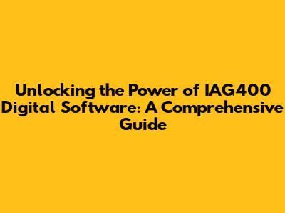 Unlocking The Power Of IAG400 Digital Software: A Comprehensive Guide