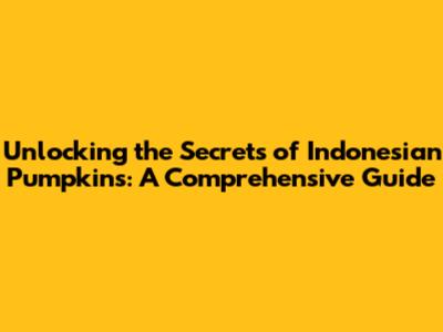 Unlocking The Secrets Of Indonesian Pumpkins: A Comprehensive Guide