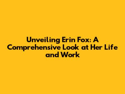 Unveiling Erin Fox: A Comprehensive Look At Her Life And Work