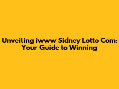 Hey there, fellow lottery enthusiasts! Ever wondered about iwww Sidney Lotto Com and what it has to offer? Well, you've landed in the right place! We're diving deep into the world of iwww Sidney Lotto Com, exploring everything from its services and features to strategies and tips that might just boost your chances of hitting the jackpot. So, buckle up, grab your lucky charm, and let's unravel the mysteries of this online lottery platform. This article is your comprehensive guide, designed to provide you with a clear understanding of iwww Sidney Lotto Com and how you can potentially make the most of it. We'll be covering the ins and outs, offering insights, and helping you navigate the platform like a pro. Whether you're a seasoned lottery player or a complete newbie, this is your one-stop resource for all things iwww Sidney Lotto Com. We're here to help you understand the platform, its offerings, and how you can increase your chances of winning big. So, get ready to discover the secrets and strategies that could turn you into the next lottery winner! This is more than just a review; it's a roadmap to potentially winning big with iwww Sidney Lotto Com. It's about empowering you with the knowledge and tools you need to make informed decisions and approach the lottery with a strategic mindset. Let's get started and uncover the exciting possibilities that await!