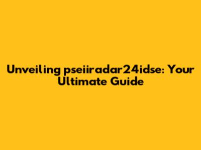 Unveiling Pseiiradar24idse: Your Ultimate Guide
