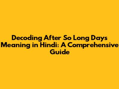 Unveiling The Meaning Of 'After So Long Days' In Hindi
