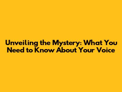 Unveiling The Mystery: What You Need To Know About Your Voice