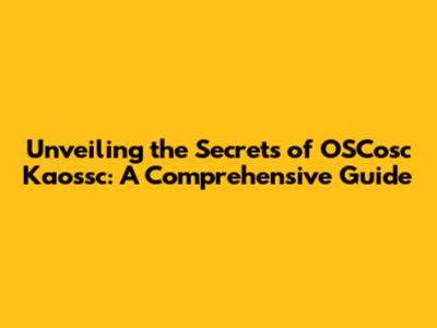 Unveiling The Secrets Of OSCosc Kaossc: A Comprehensive Guide