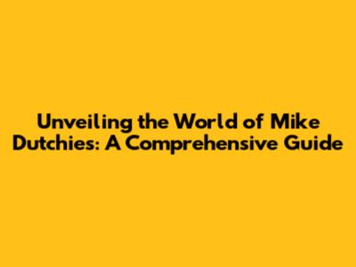 Unveiling The World Of Mike Dutchies: A Comprehensive Guide