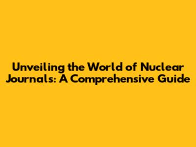 Unveiling The World Of Nuclear Journals: A Comprehensive Guide
