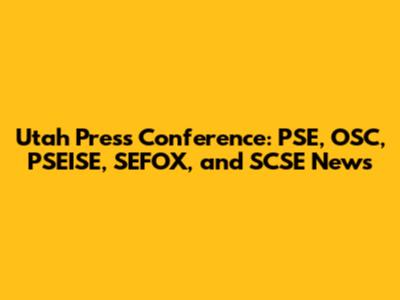 Utah Press Conference: PSE, OSC, PSEISE, SEFOX, And SCSE News