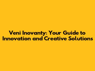Veni Inovanty: Your Guide To Innovation