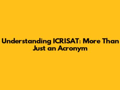 Understanding ICRISAT: More Than Just an Acronym