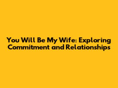 You Will Be My Wife: Exploring Commitment And Relationships
